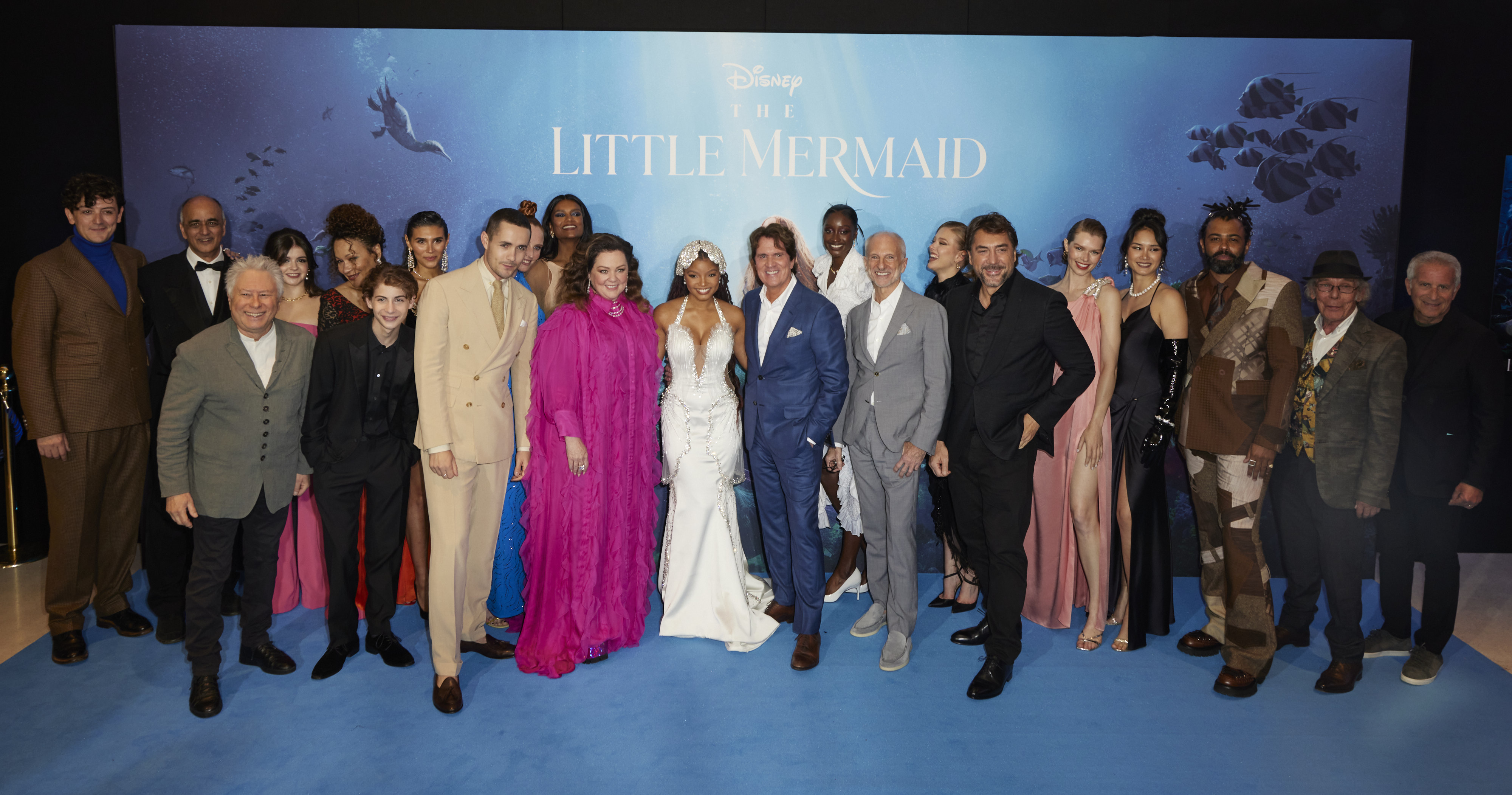 Asistieron los protagonistas de la película Halle Bailey, Jonah Hauer-King, Daveed Diggs, Jacob Tremblay, Javier Bardem, Melissa McCarthy, Noma Dumezweni y Art Malik, así como el director y productor Rob Marshall, los productores Marc Platt y John DeLuca, el compositor Alan Menken, el productor ejecutivo Jeffrey Silver e invitados como James Corden, Stanley Tucci, Guy Ritchie, Sir Tim Rice y Alexander Molony, entre otros.